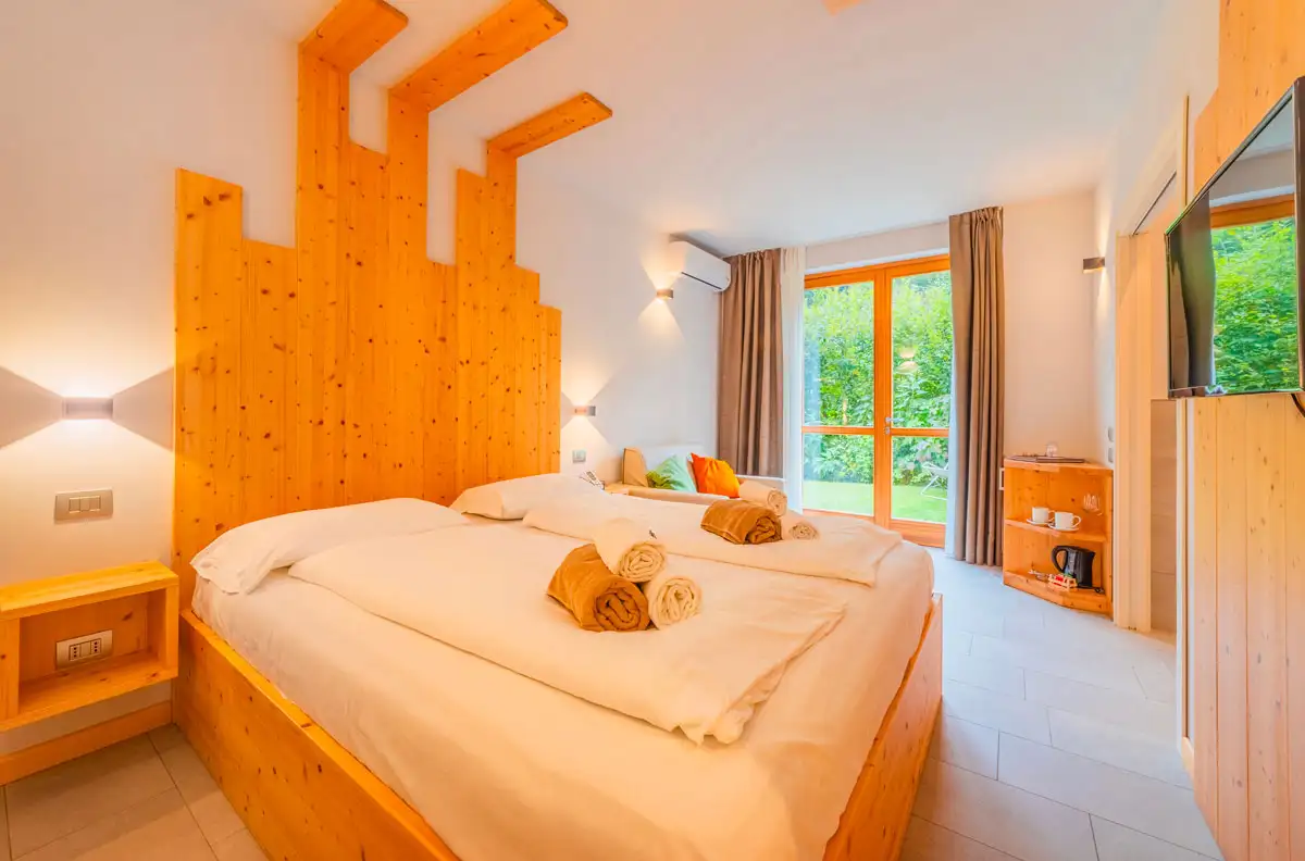 Per le famiglie con bambini è possibile aggiungere un lettino per i più piccoli, garantendo loro un sonno tranquillo e sicuro. In alternativa, la poltrona presente nella camera può trasformarsi in un nido accogliente, perfetto per accogliere i vostri bambini in un ambiente confortevole.