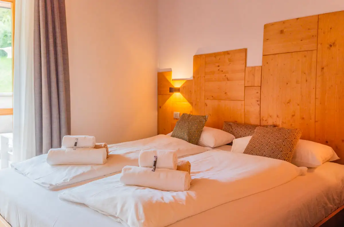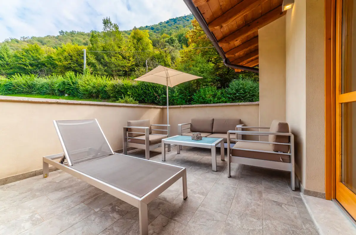 Each room has a private balcony overlooking the pool. Here you can admire the calming atmosphere of the surrounding mountains and be enchanted by the gentle sounds of nature.