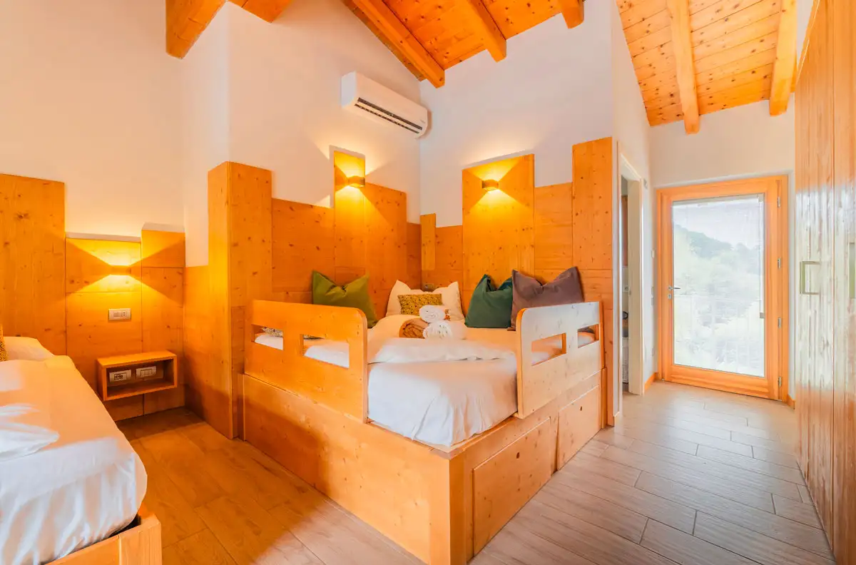 For families with children, a crib can be added to ensure a peaceful and safe sleep. Alternatively, the alcove in the room can be transformed into a cozy nest, creating an unforgettable and unique vacation experience for your children.