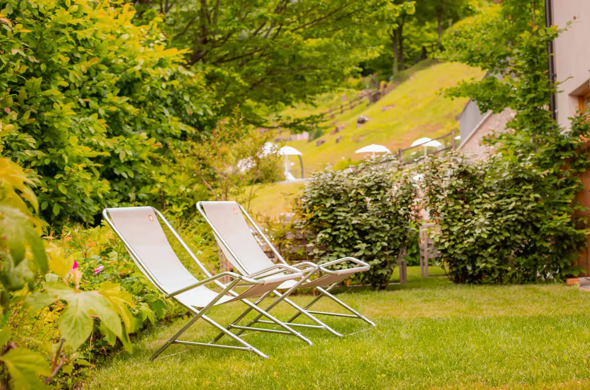 Ogni camera dispone di un piccolo giardino privato. Qui potete ammirare le maestose montagne circonstanti e perdervi nel dolce suono della natura.