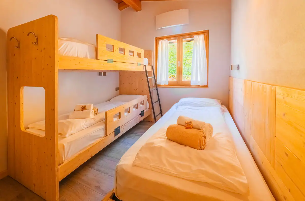 - 2 camere da letto, una con letto matrimoniale e una con letto a castello e letto singolo
