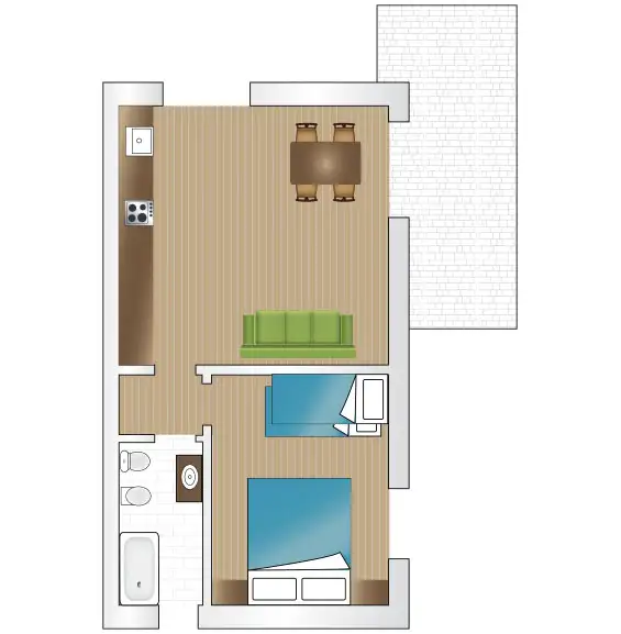 - woonkamer met slaapbank, stereo-installatie, airconditioningsysteem